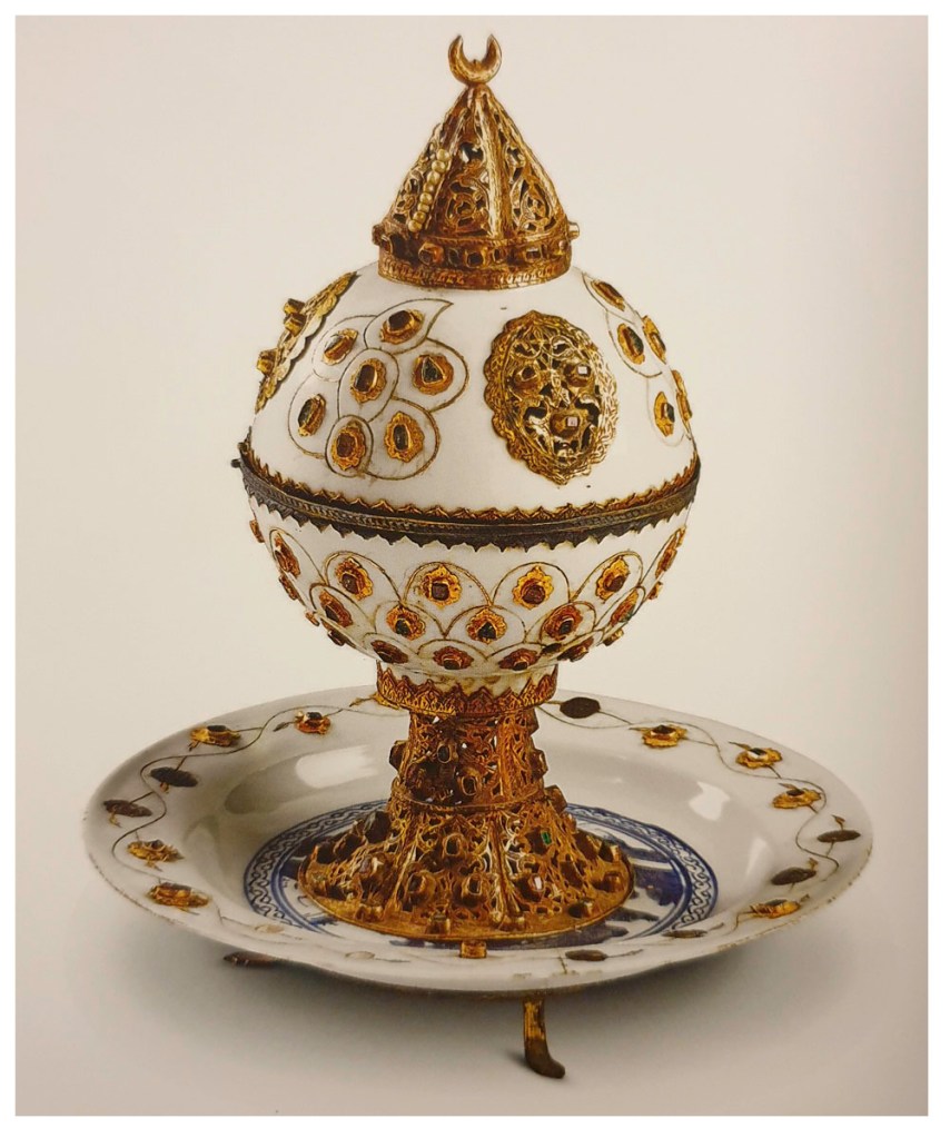 A Ming-dynasty porcelain incense burner, jewelled by Ottoman craftsmen