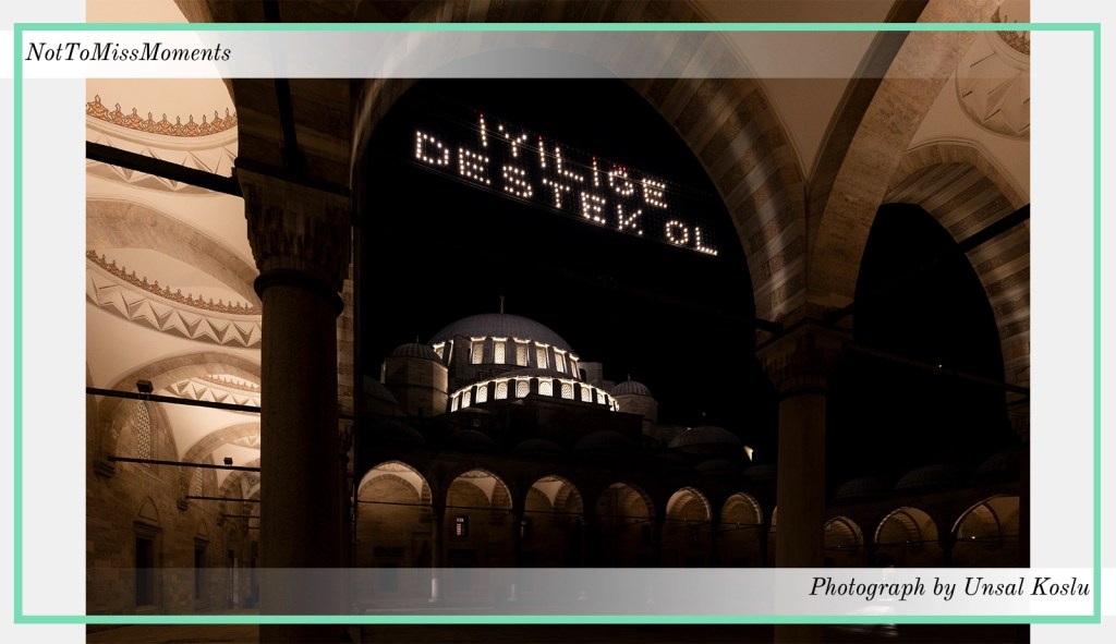 I also took the opportunity during Ramadan to photograph some of the mahyas at Istanbul’s mosques. The mahya hanging at the Süleymaniye Mosque became my favorite among the photos I took. That’s why I’m sharing this below photo with you.